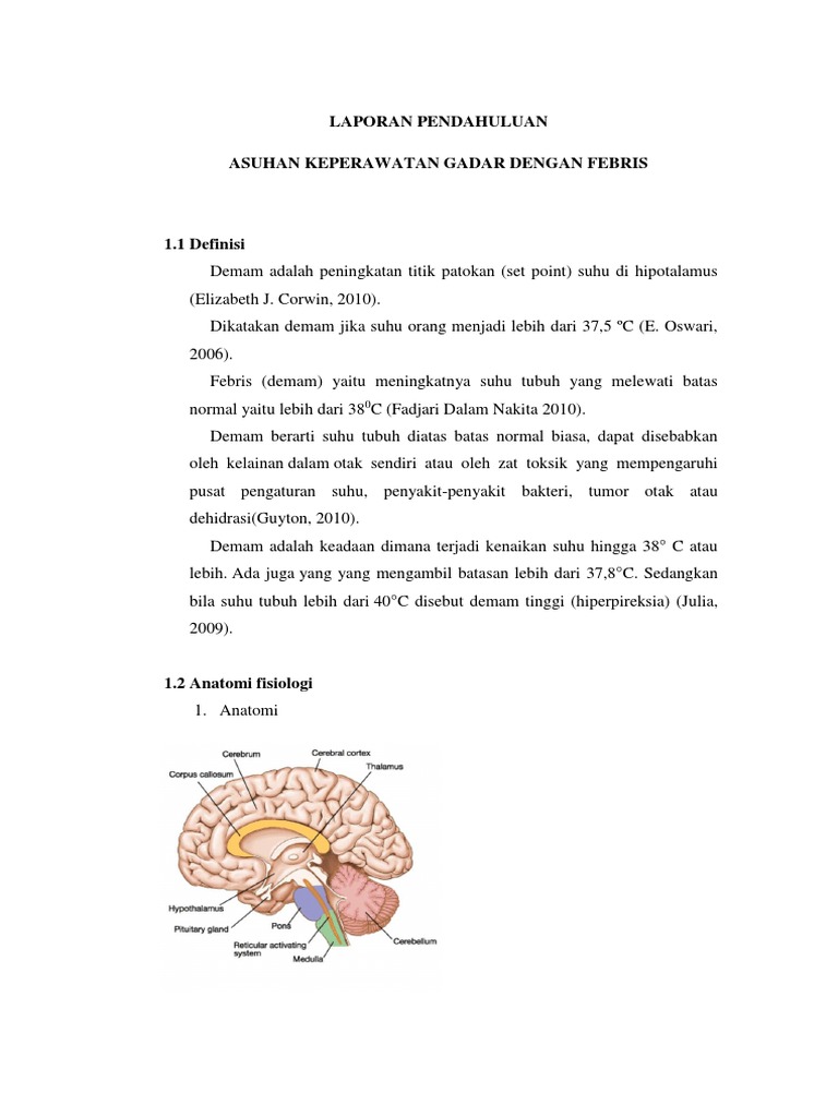 Anatomi fisiologi febris. 0 0 found this document not useful Mark this document as not useful. ANATOMI FISIOLOGI Neuroanatomi Pusat Pengaturan Tidur Gambar 1. Pengertian Demam Demam berarti suhu tubuh diatas batas normal biasa dapat disebabkan oleh kelainan dalam otak sendiri atau oleh zat toksik yang mempengaruhi pusat pengaturan suhu penyakit-penyakit bakteri tumor otak atau dehidrasi.